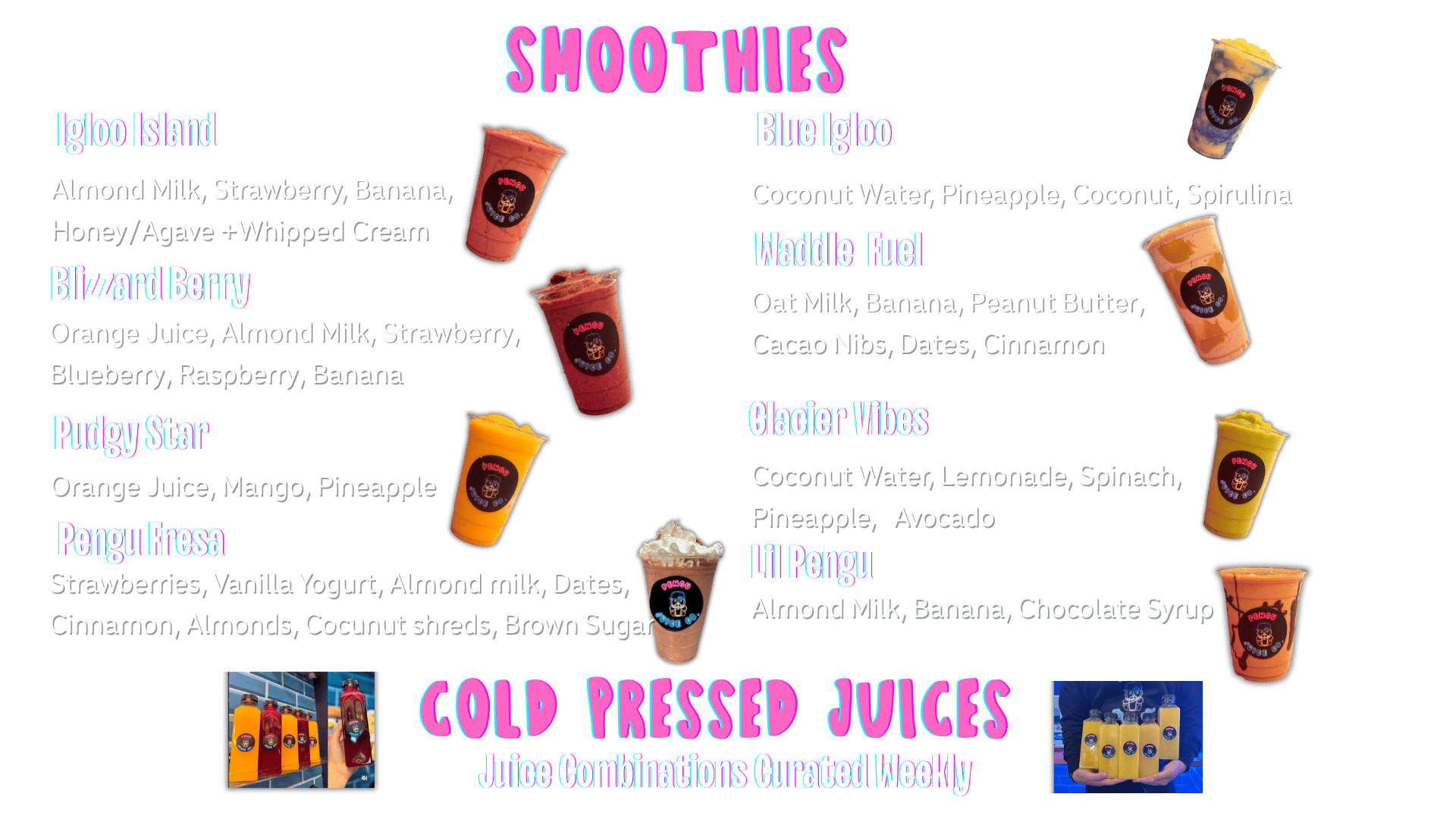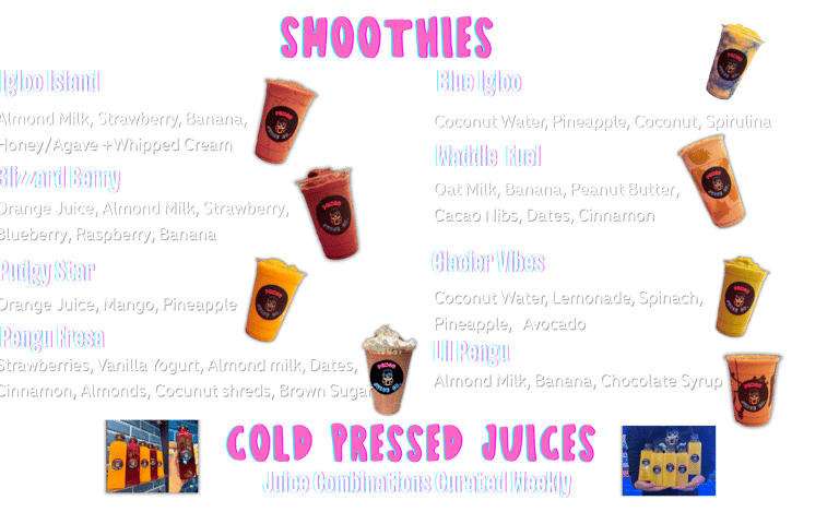 Now available on Uber Eats, DoorDash & Grubhub - Order your Pengu Juice Co. favorites!